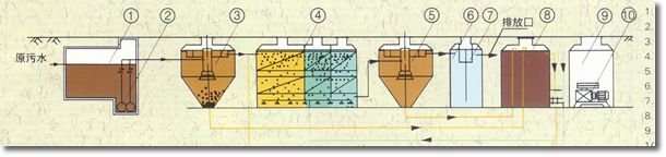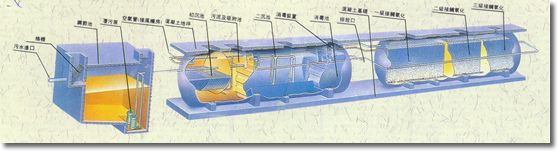 (1)初沉池:地埋式生活污水處理設(shè)備的初沉池為豎流式沉淀池,污水在沉淀池的上升流速為0.6-0.7毫米/秒,沉淀下來的污泥用空氣提至污泥池。(注:WSZ-A O.5-5m3/h不設(shè)初沉池)