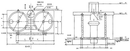 5、表中排水管在±0.00以上接出,根據(jù)用戶要求還可以改為±0.00以下接出:即DLB-100、120、150、200四種規(guī)格的排水管標高可改為-0.45m。省去兩個彎頭,直接接入檢查井,用戶在訂貨時應(yīng)在合同中注明要求。
